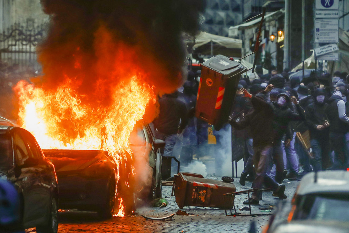 Opprørspoliti i Napoli har måttet bruke tåregass mot fotballsupportere som lager bråk foran mesterligakampen mellom Napoli og Eintracht Frankfurt. Hjemmelaget vant kampen knusende 5-0.