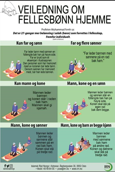 For å rettlede norske muslimer til å gjennomføre fellesbønn i hjemmet, la Islamsk Råd Norge ut en bønneveiledningsplakat på Facebook. Det ble visstnok mange sinte- og gråtefjes da flere fant rådene kvinnediskriminerende.