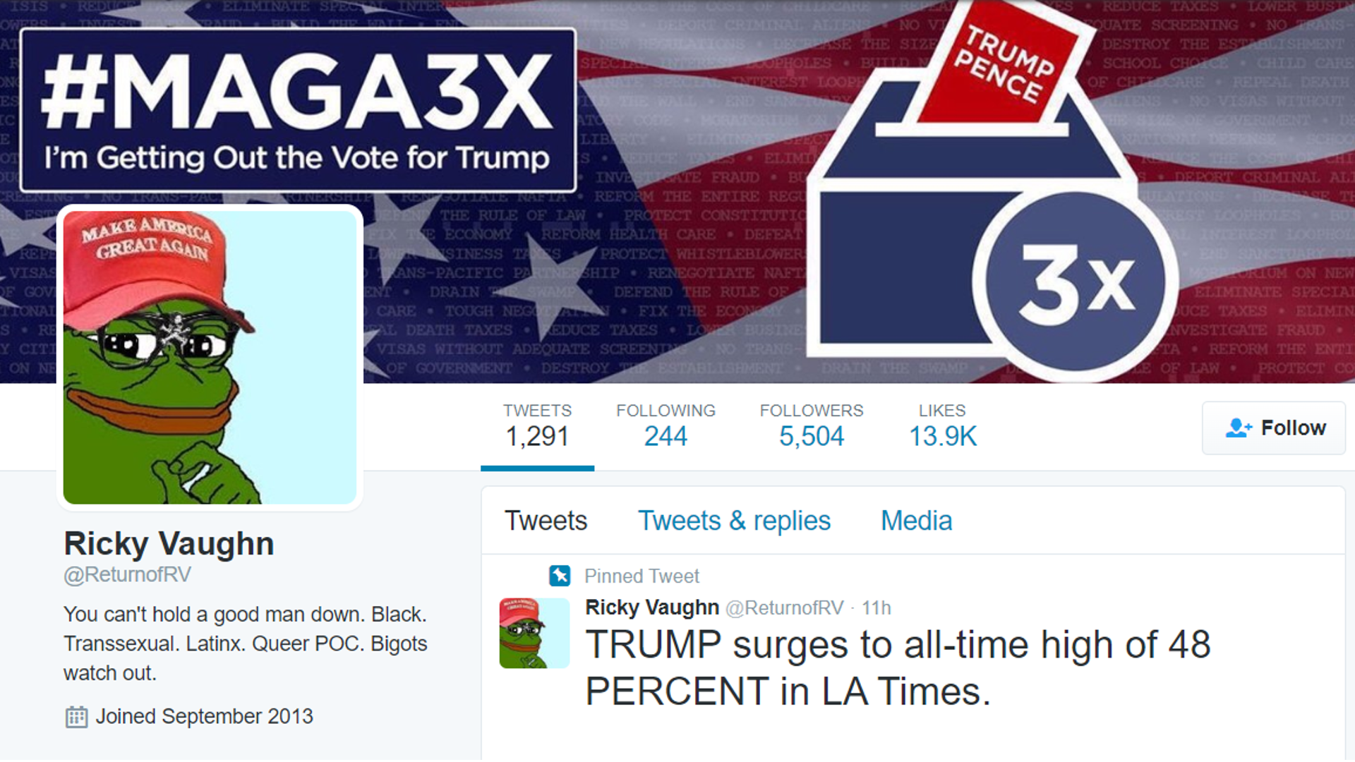 Douglass Mackey, 31, is on federal trial in the Eastern District of New York for posting a meme under the Twitter handle “Ricky Vaughn” in 2016, advising voters they could vote for Hillary Clinton for president via text message or social media.