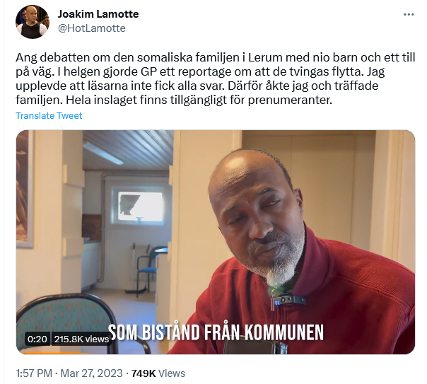Utenfor Göteborg forklarer en somalisk familie som venter sitt tiende barn at de livnærer seg på barnetrygd, pluss ulike bidrag fra kommunen som kommer i tillegg til dette.