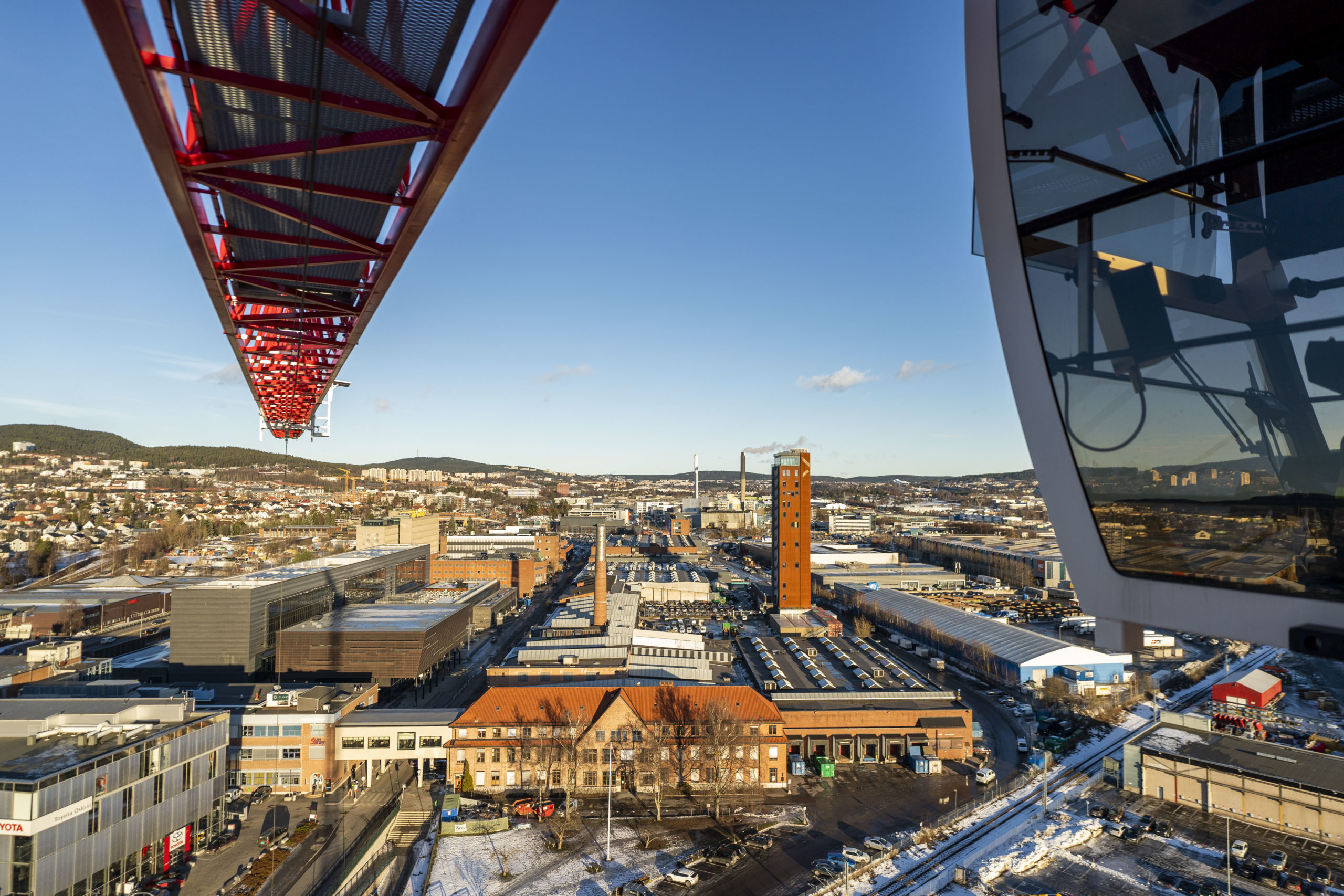 Området Ulven, Økern og nordover mot Groruddalen i Oslo sett fra heisekran den 30. januar 2023. Foto: Håkon Mosvold Larsen / NTB.