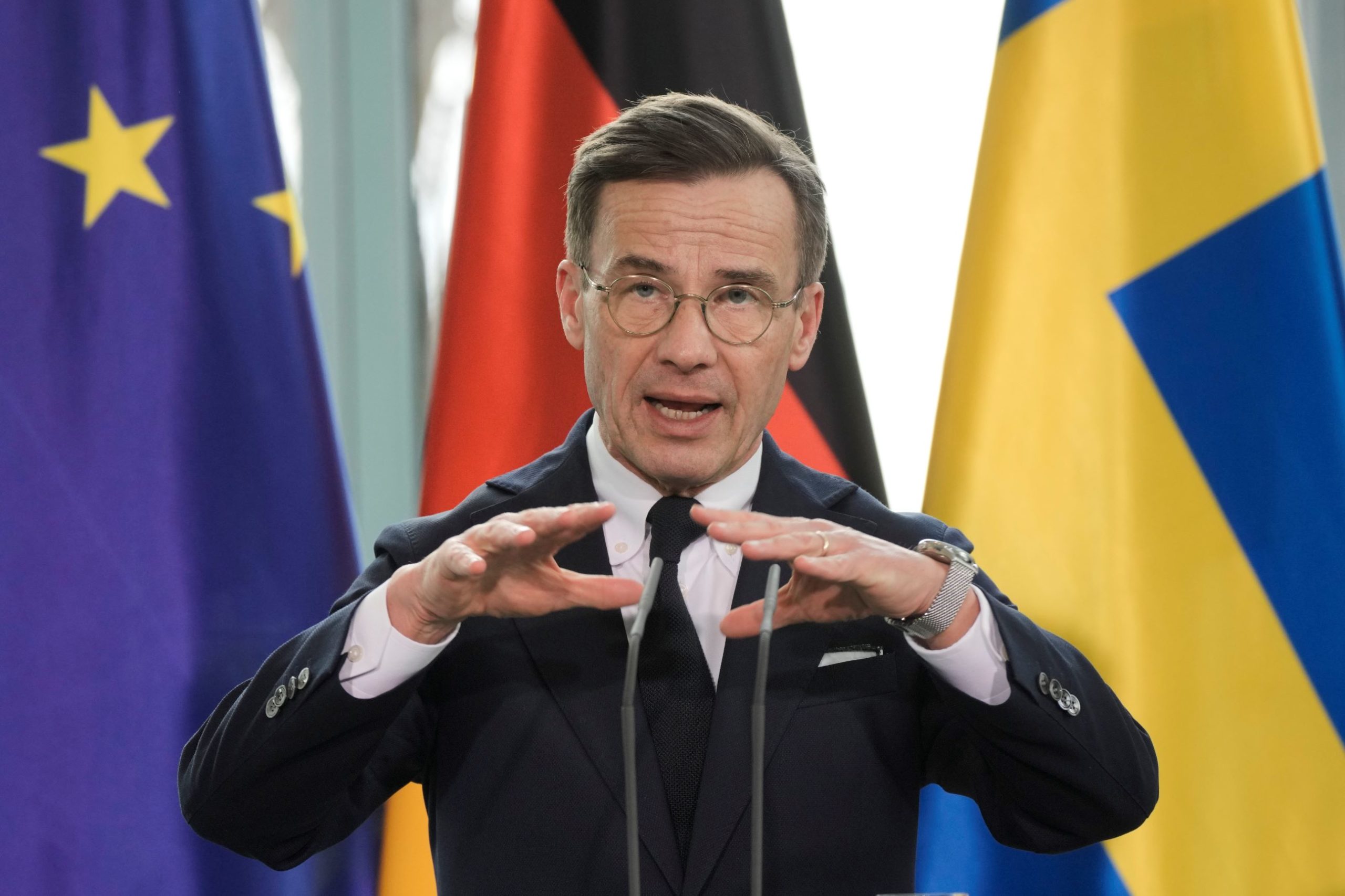 Sveriges statsminister Ulf Kristersson. Foto: AP Photo/Markus Schreiber