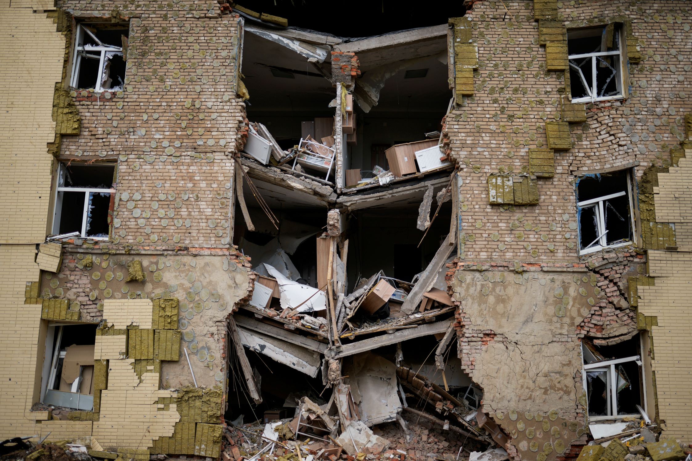 Ruiner av boligblokk etter russisk bombing. Foto: AP Photo/Francisco Seco, File