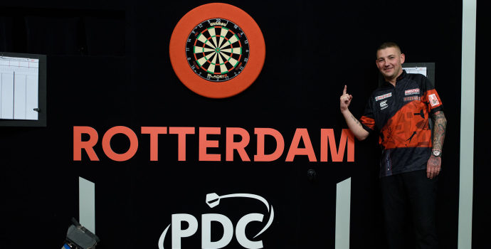 Stockport-stjernen sparket i gang runden med å knuse Michael van Gerwens håp om en drømmehjemkomst foran 11 000 tilskuere, da han slo ut den nederlandske superstjernen.