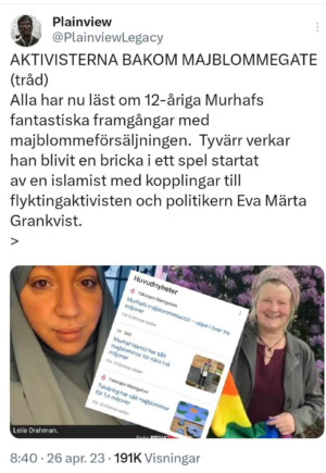 Men Leila Orahman er også en islamist, som har opptrådt i media under forskjellige navn. I 2019 startet Orahman den såkalte Hijabuppropet, som var et politisk initiativ for å fremme islamsk hijab i Sverige. I Hijabuppropets Facebook-gruppe er blant annet Partiet Nyans partileder Mikhail Yüksel, som gjør oppmerksom på Murhafs mai-blomstersalg på sin Twitter-konto. Leila Orahman startet deretter KvinnoFörmedlingen, som hevder å hjelpe utsatte kvinner, men som også driver med innsamlinger og asylhjelp. Akkurat nå er det ifølge forbundets Facebook-side fokus på annonsering av Murhaf og «bekjempelse av rasisme». KvinnoFörmedlingen har tilknytning til islamistisk muslimsk hjelp og hjelper gjennom stadige økonomiske innsamlinger kun muslimer/asylsøkere/ulovlige/udokumenterte.