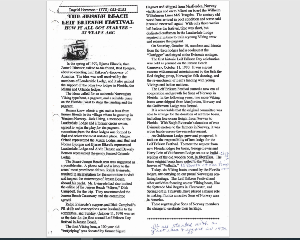 Kanskje det er noen norskamerikanere i Florida eller andre steder som leser dette og vil bli involvert? Eller kanskje noen av leserne skal til Florida i nærmeste fremtid og vil se båten eller intervjues?