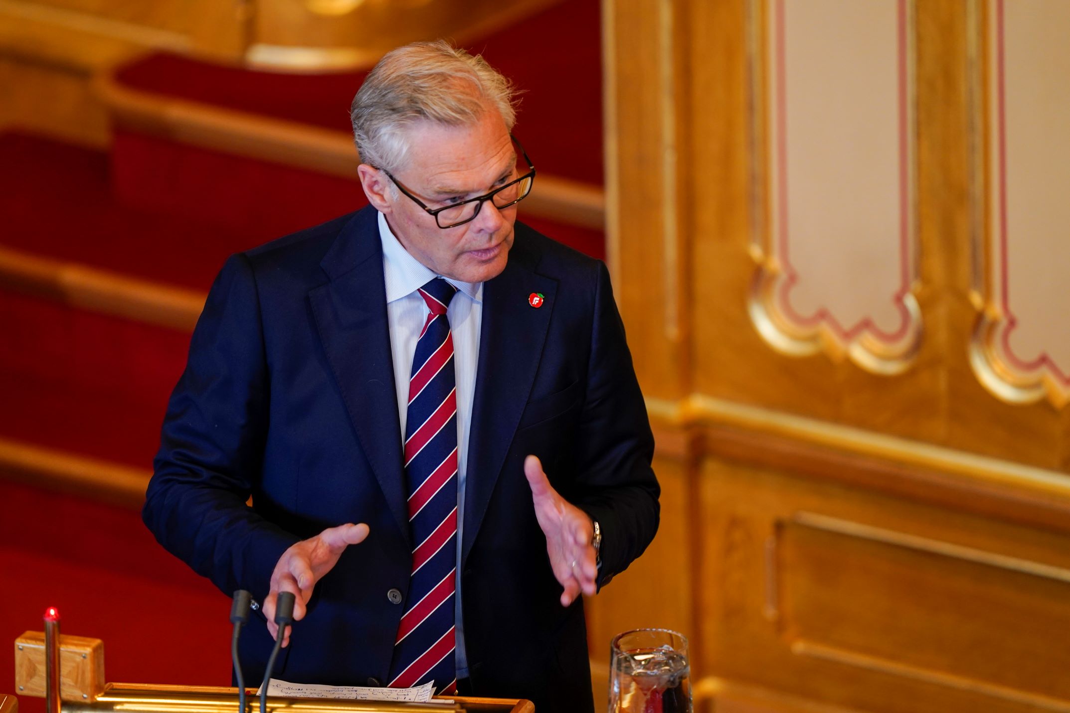 Hans Andreas Limi (FrP) stiller spørsmål til statsminister Støre i Stortinget. Foto: Terje Pedersen / NTB