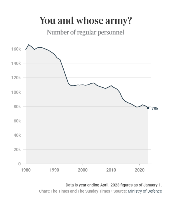 In 2021 the defence secretary announced plans to reduce the number of tanks from 227 to 148 and shrink the army to 73,000 troops, its smallest size since the Napoleonic era.