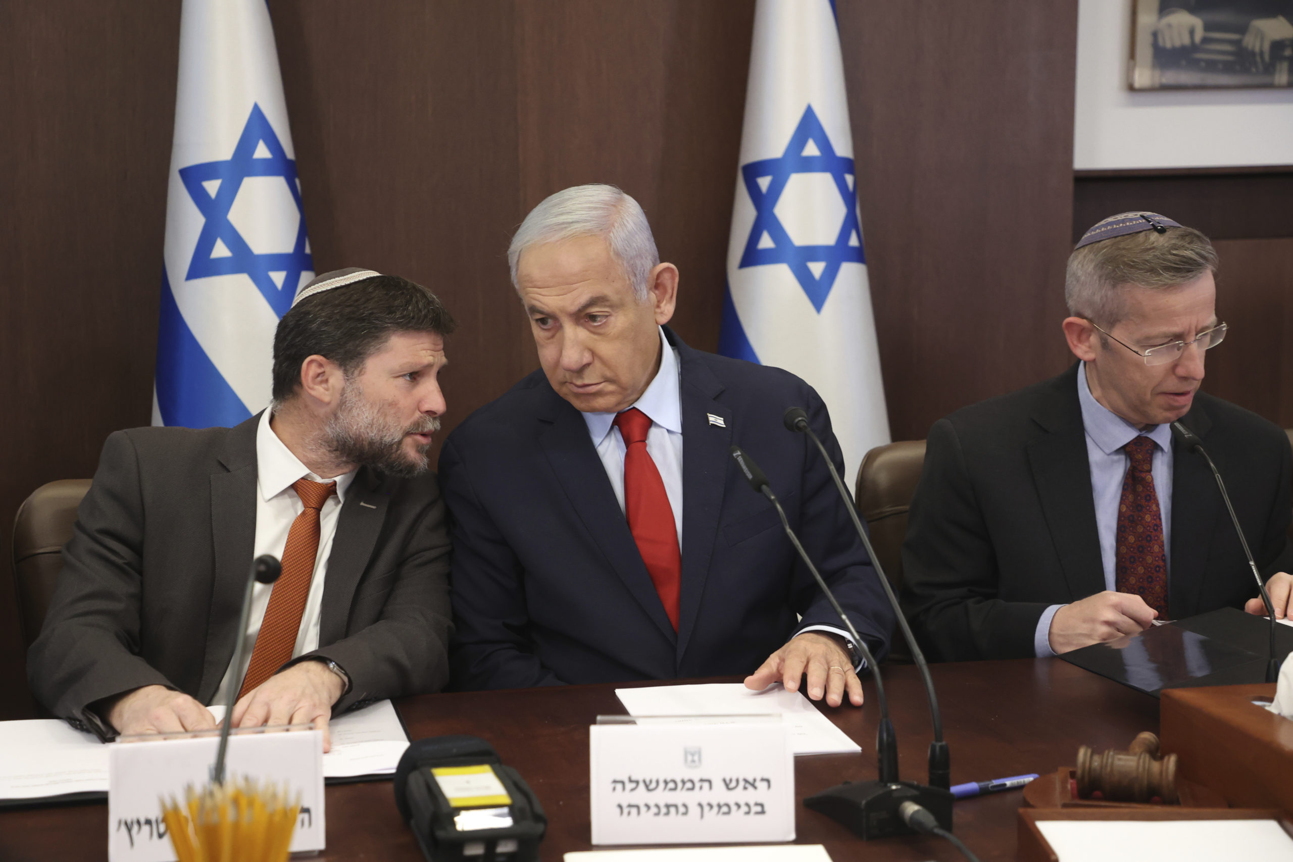 Israels statsminister Benjamin Netanyahu leder et møte på sitt kontor i Jerusalem den 14. mai 2023. Foto: Gil Cohen-Magen / Pool via AP / NTB.