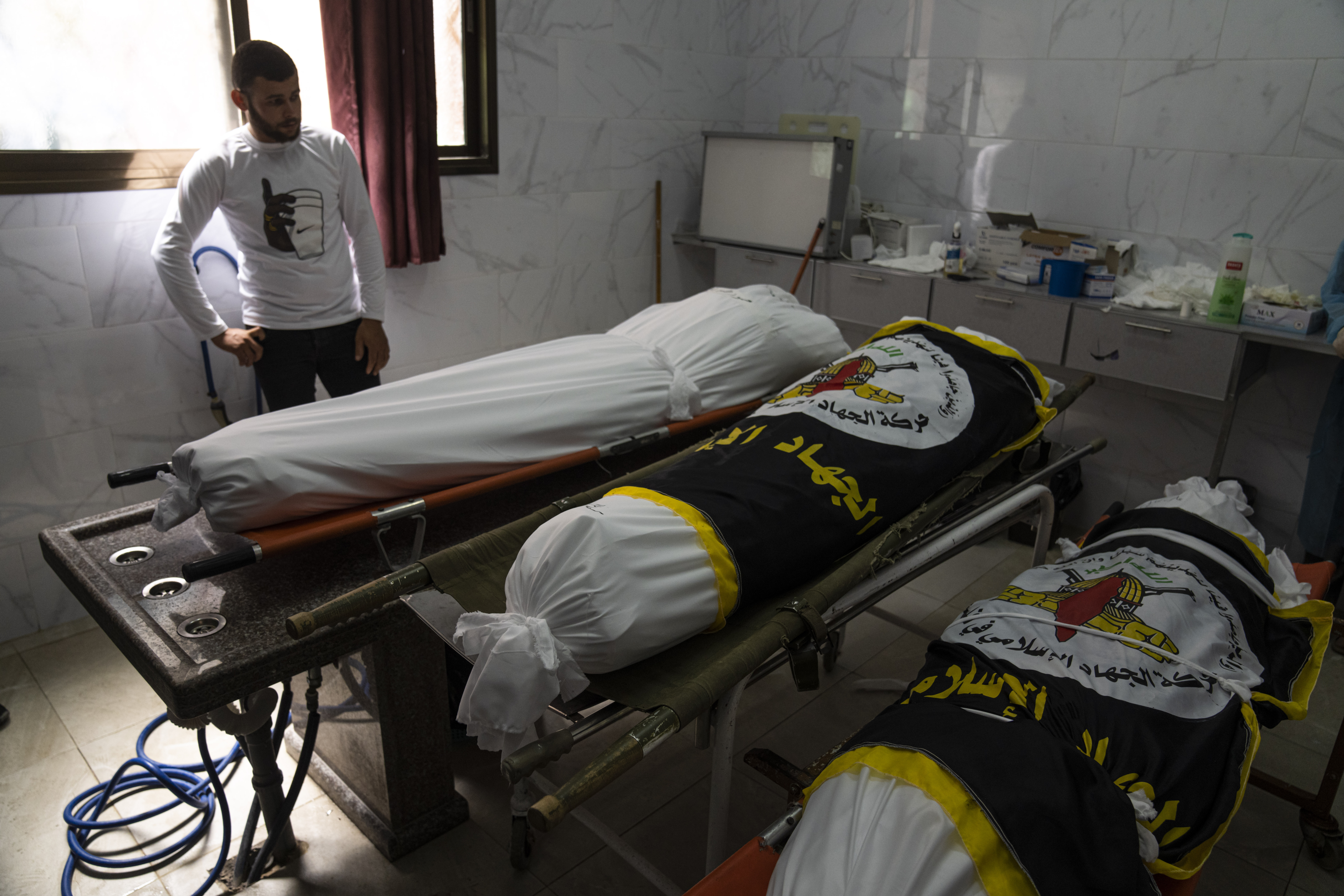 Blant de drepte i Israels motangrep var en av Palestinian Islamic Jihads lederskikkelser Ali Ghali (t.h.), hans bror Mohammed Ghali og Mahmoud Abdeljawwad. Foto: Fatima Shbair / AP / NTB.