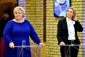I en ny partimåling får Høyre og FrP 85 av 169 mandater på Stortinget. – Dette er utrolige tall for Høyre, sier partileder Erna Solberg.