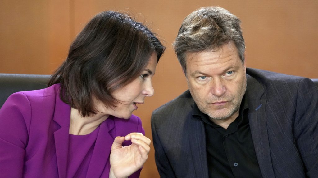 Tysklands utenriksminister Annalena Baerbock med klima- og økonomiminister Robert Habeck – begge tilhørende De grønne. Foto: Michael Sohn / AP / NTB.