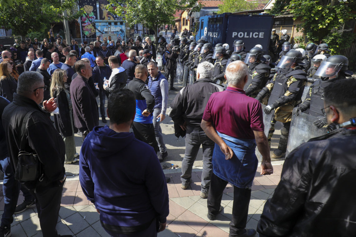 Nato-soldater i Kosovo ble mandag satt inn for å holde demonstrerende serbere i sjakk ved tre rådhus som har fått kosovoalbanske ordførere. Den serbiske presidenten Aleksandar Vucic har satt landets styrker i kampberedskap.