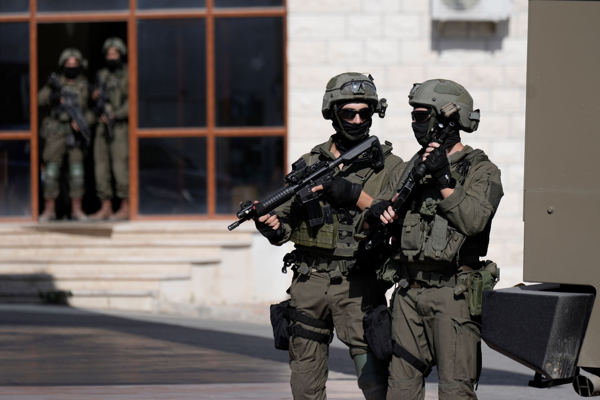 Israelske soldater ved bosettingen Hermesh, tirsdag 30. mai 2023. Foto: AP Photo/Majdi Mohammed