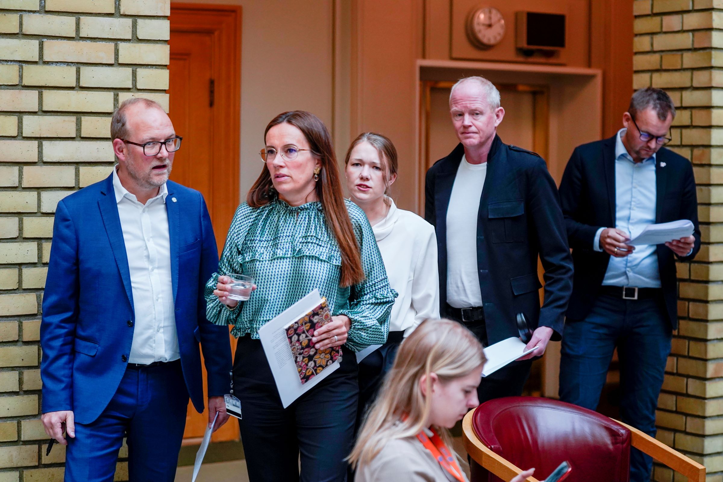 Enighet: Fra v. Ole A. Myhrvold (Sp), Marianne Sivertsen Næss (Ap), Une Bastholm (MDG), Lars Haltbrekken (SV) og Kjell Ingolf Ropstad (KrF). Foto: Lise Åserud / NTB