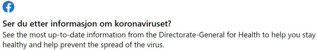 Skotske helsemyndigheter forteller i en reklamekampanje på Facebook at «It’s not too late to come forward for your first or second dose of the covid-19 vaccine» – hvilket er utlagt: «Det er ikke for sent å få din første eller annen dose av covid 19-vaksinen».
