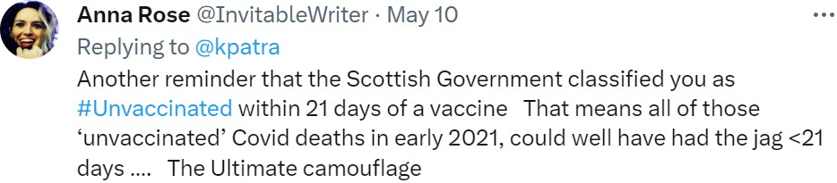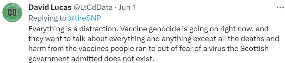 Enda ondere tunger, diabolsk onde, hevder at annonsen var nede på grunn av at den er en trussel mot den skotske folkehelse, de skriver nemlig at første og annen dose tilbys fem- til 49-åringer, altså mennesker med en stor del av livet foran seg og som er spesielt sårbare for vaksineskade og tap av leveår.