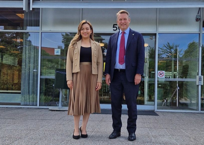 El Salvadors ambassadør i Sverige, Patricia Godinez (v.) og den svenske kommunalpolitiker Daniel Källenfors (M). Foto: Facebook