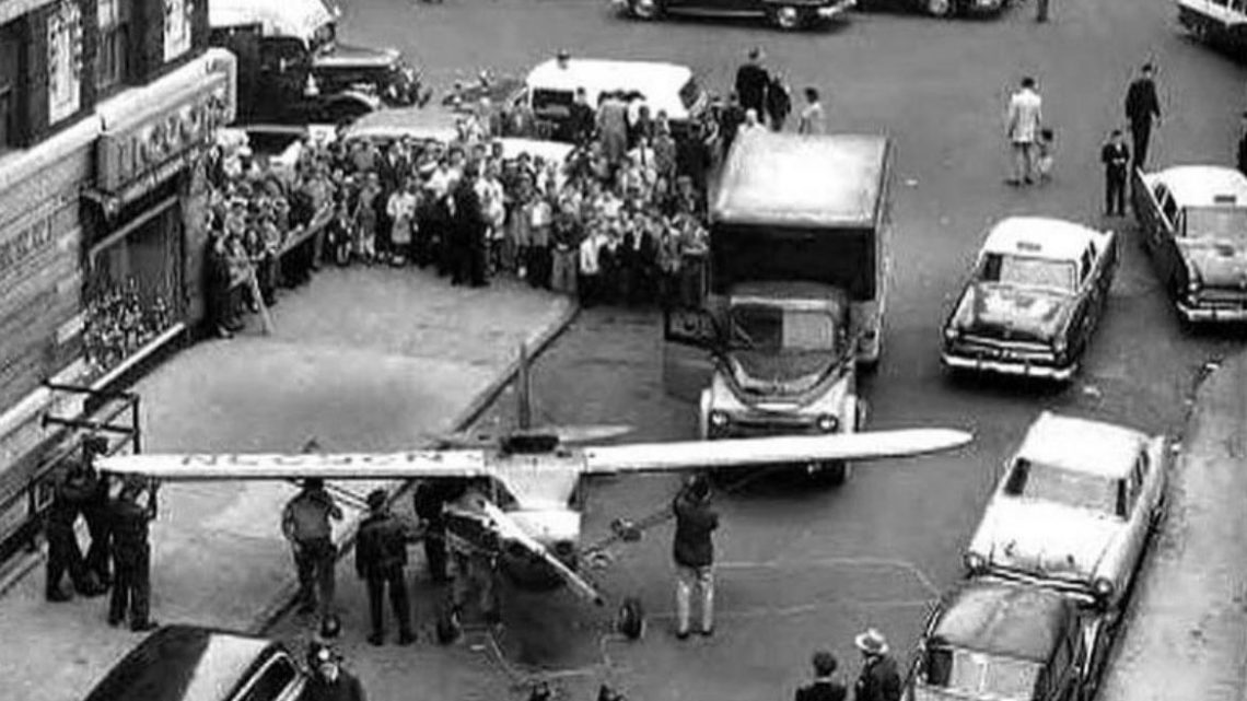 Han forlot baren. To timer senere landet han et stjålet fly på gaten og taxet opp foran baren i det sentrale New York.