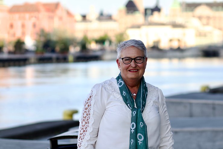 Ewa Wressmark er advokat og medlem av Centerpartiet – her avbildet med kvinnesaksskjerf (!). Hun burde fullføre prosessen mot svenske jenter (det ble anmelt 10.000 voldtekter i Sverige i 2022) ved offentlig gå ut og anbefale unge innvandrergutter til å gjøre unna voldtektene før de blir 18 år. Den yngste voldtektsforbryteren er ute fra ungdomsanstalten om få uker – han er fremdeles bare 15 år.