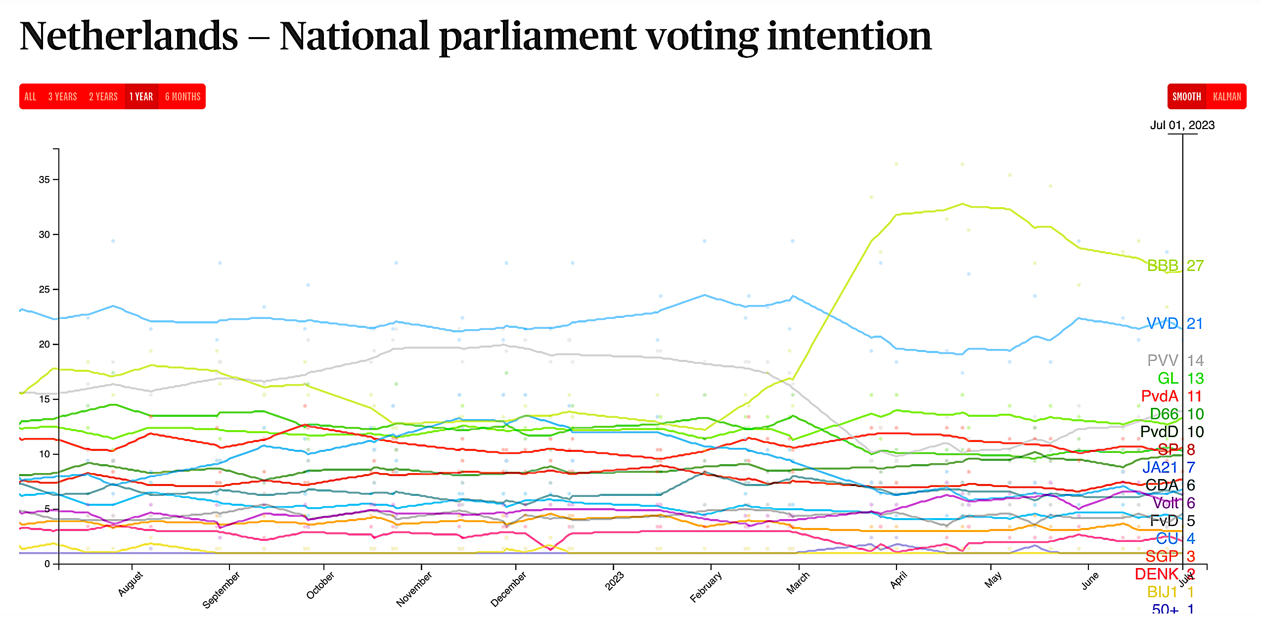 Det store spørsmålet er i hvilken grad Bonde- og borgerbevegelsen (BBB) vil gjøre seg gjeldende i det politiske landskapet i Nederland etter nyvalget til Tweede Kamer. BBB gjorde et brakvalg til Eerste Kamer (senatet) i mai, og har siden ligget høyest på meningsmålingene i landet.