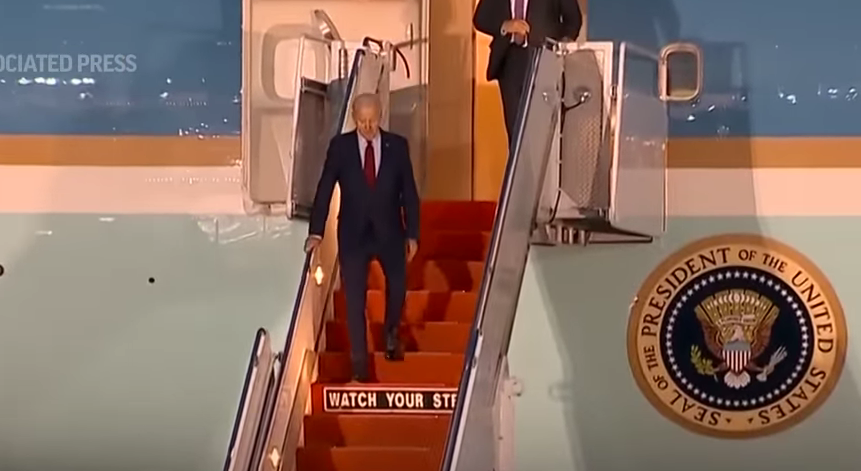 Verden følger spent med, og den pinlige affæren har allerede startet, ser det ut til, da flere har observert skiltene på trappen til Air Force One. «Watch your steps, Mr. President».
