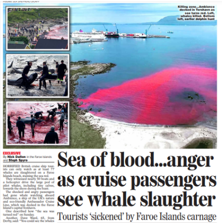 Historien om cruisepassasjerer som ble traumatisert etter hvalfangst på Færøyene er klimahykleri på sitt beste. Tusenvis av «øko-bevisste» cruisepassasjerer tar turen til Færøyene på et gigantisk cruiseskip som er bare én av hundretusener av flytende klimaverstinger rundt omkring i verden. De kommer dit som gjester og fordømmer dette lille landets fangsttradisjon. Hykleri på sitt beste, som viser menneskeheten på sitt verste.