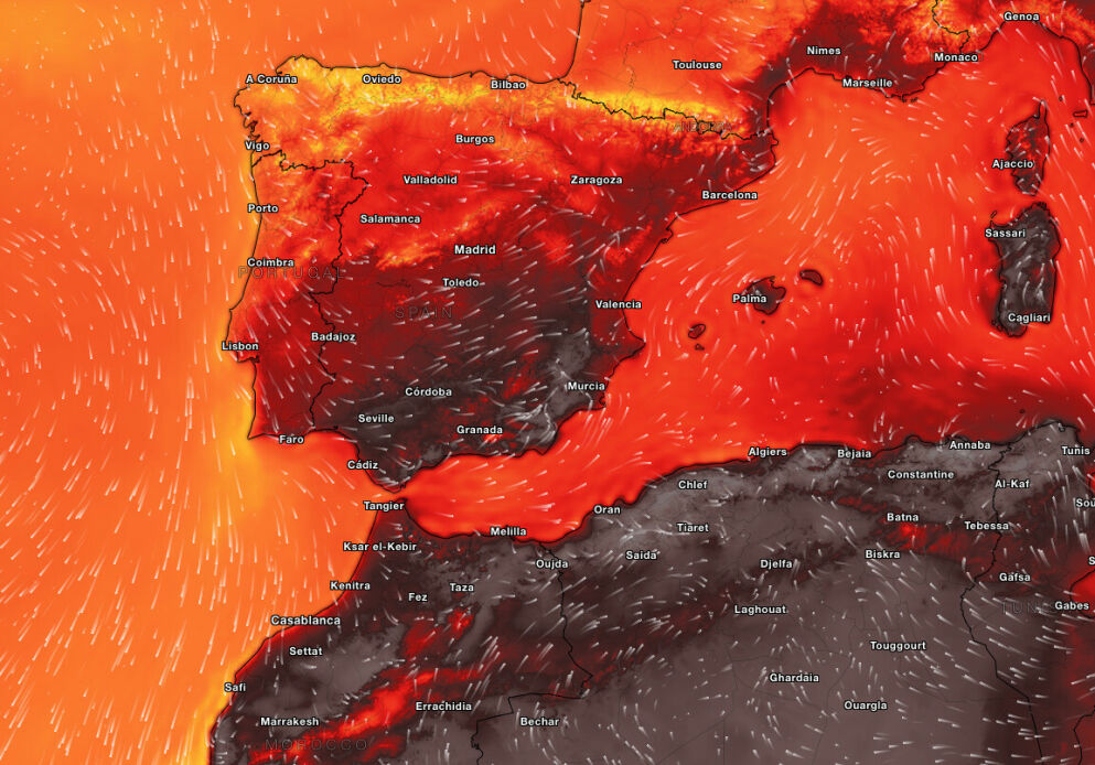 «Oppdatert spesialvarsel: Temperaturene vil bli svært høye de neste dagene i store områder av landet, skriver Spanias meteorologiske byrå, (AEMET).»