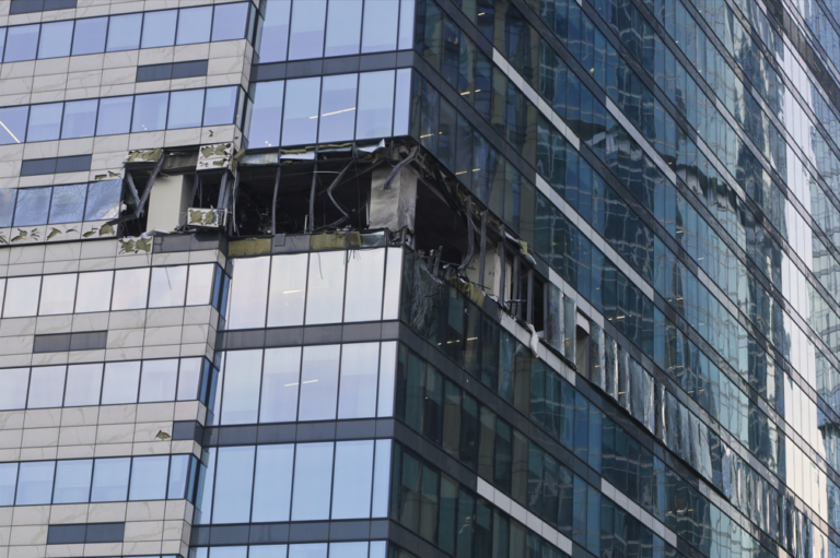 Droner har truffet flere bygninger i Moskva natt til søndag. En sikkerhetsvakt skal ha blitt såret.