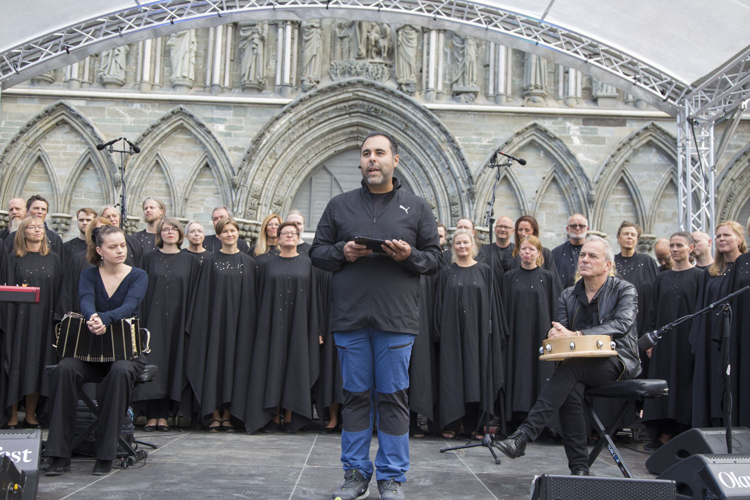 Britiske Zena Edwards, med karibiske røtter, var hyret av Lille Amal-teamet for å understreke det aktivistiske budskapet om at flere fremmedkulturelle må få komme til Norge og Europa. Greit at aktivister står på, men hva har et så omstridt politisk budskap med åpningen av Olavsfestdagene å gjøre? Budskapet går heller imot festivalens opprinnelige innhold og vår kristne kulturarv. Har festivalen har glemt å endre egen formålsparagraf, der det blant annet står at den er «nært knyttet til Nidarosdomen som et nasjonalt kirkelig og kulturelt kraftsentrum, forankret i den tusenårige olsoktradisjonen.» Foto: Bente Haarstad.