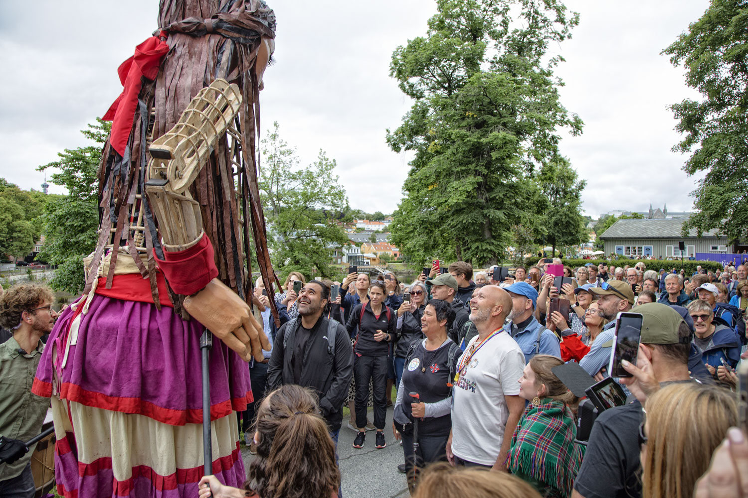 «Det er rørande å oppleve Little Amal på #olavsfest! I dag på Marinen møter den syriske flyktningjenta tusen barn frå SFO i Trondheim. Dei flokkar seg om henne; kanskje opplever dei både smerten og solidariteten som dette verdsvide prosjektet set seg føre å synleggjere»,