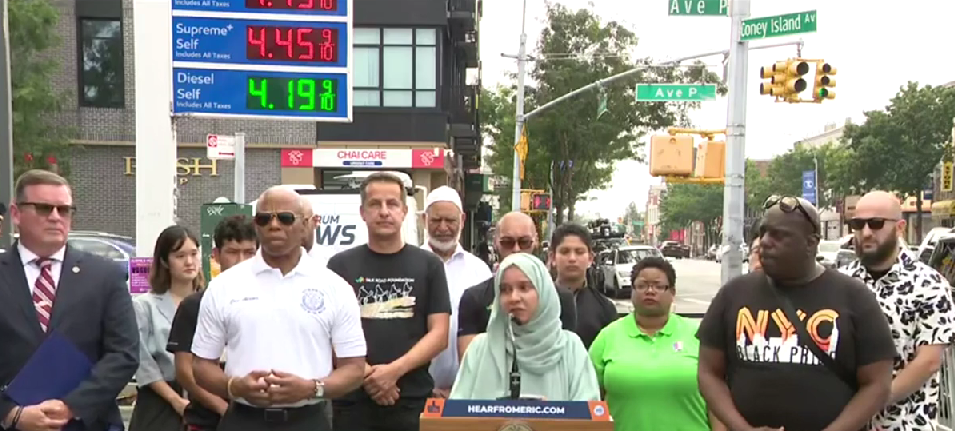 Borgermester Eric Adams holdt en pressekonferanse på mobilstasjonen hvor O’Shae Sibley ble knivdrept. Han sa at det var ingen tvil om at drapet på den homofile danseren var hatkriminalitet, men la til at hat fra det muslimske samfunnet mot LHBT-personer er ikke sant.