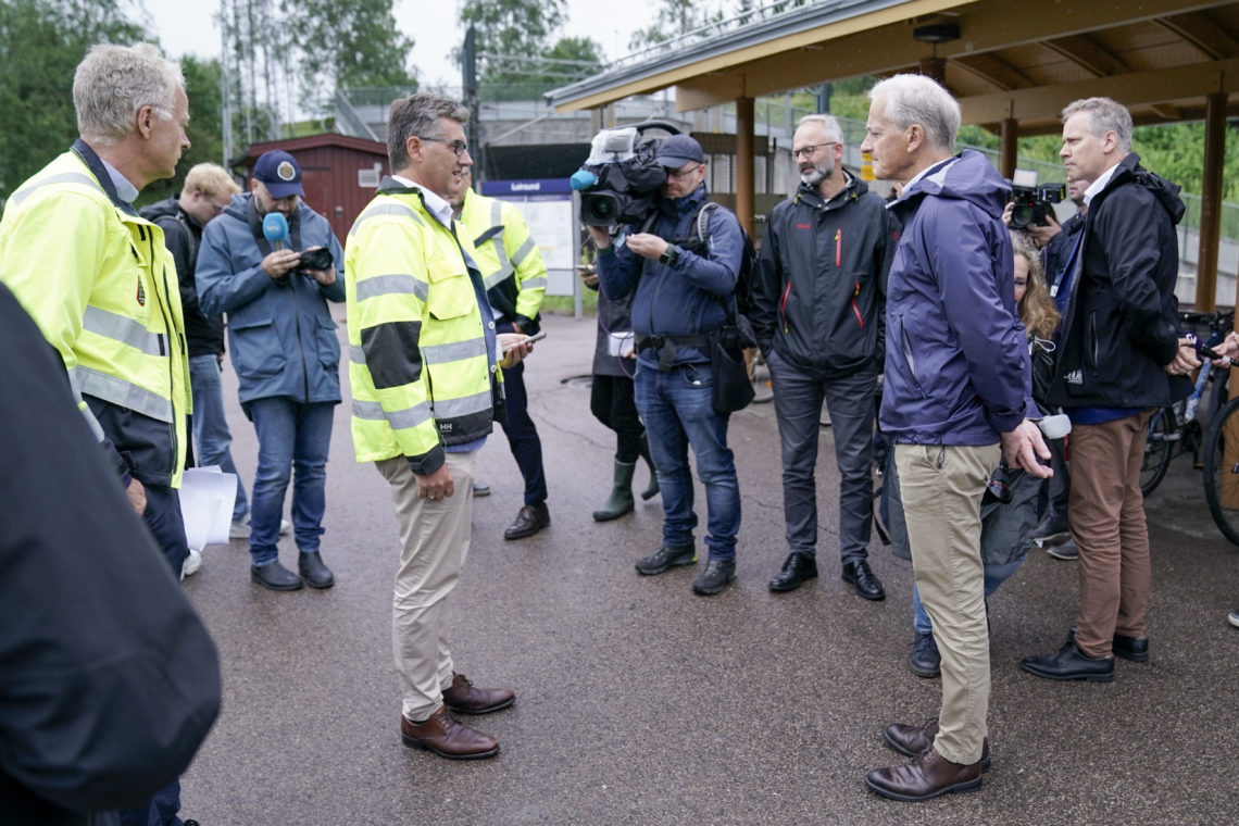 Begrunnelsen for å stanse togene nordover fra Oslo på tredje dagen oppgis å være «overvann», nærmere bestemt ved Leirsund stasjon. Statsministeren besøkte onsdag morgen Leirsund for å se «overvannet» som hindrer togene i å gå.