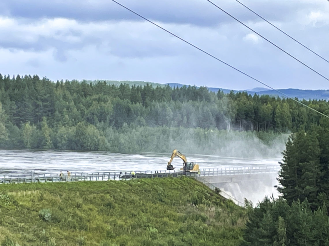 Vann har trengt inn i et kraftverk på Braskereidfoss i Våler kommune. Den lokale utrykningslederen sier det er krise, men det blir ingen sprengning. Demningen har brutt sammen, vannet fosser frem.