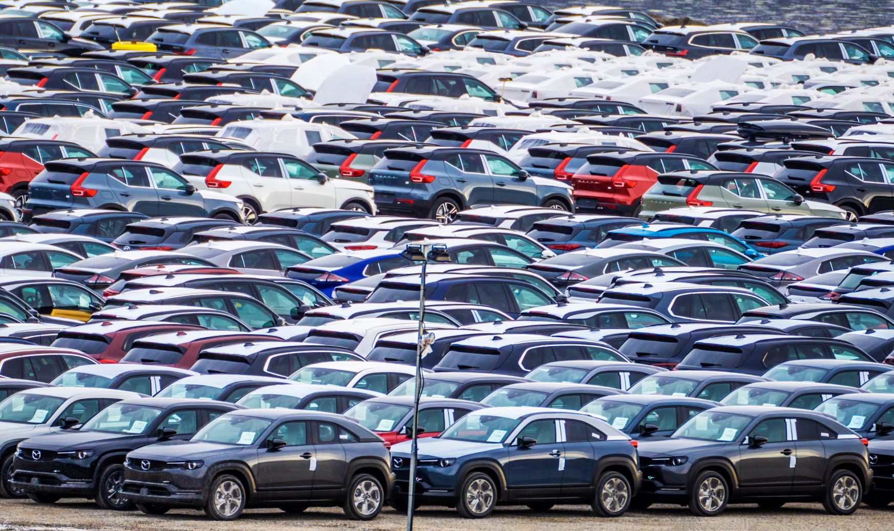 De gode tidene for bilbransjen ser ut til å være over i denne omgang. Salget går trått, og nye, usolgte biler står tett i tett i importhavna.