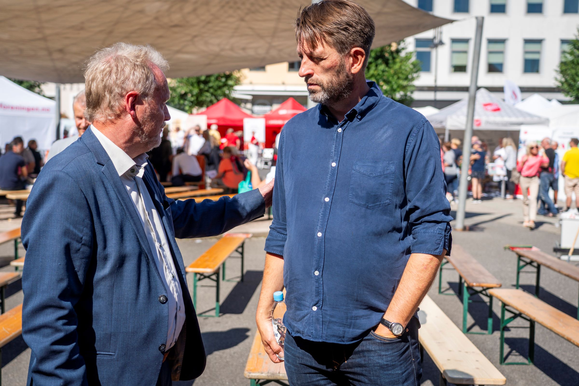 Byrådsleder Raymond Johansen (Ap) og Høyres byrådslederkandidat Eirik Lae Solberg. Foto: Heiko Junge / NTB