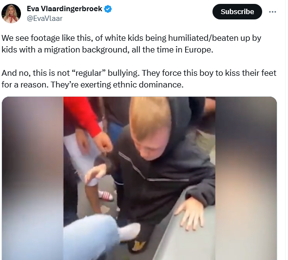 Virale opptak av en hvit belgisk tenåring som blir brutalt slått av en gjeng og tvunget til å kysse føttene til angriperne hans, har fremkalt sterke reaksjoner fra motstandere av masseinnvandring.