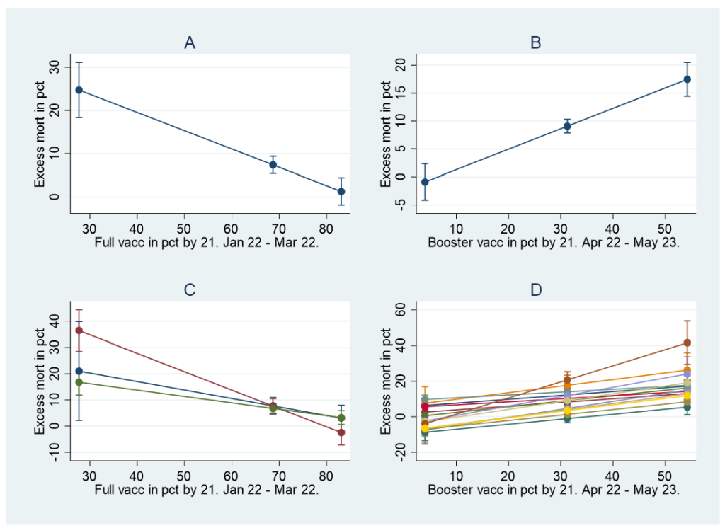 Kortversjon på norsk oversatt fra preprint på engelsk som inneholder referanser og detaljert informasjon om data og analyser. Sammendrag. Denne studien oppdaterer tidligere forskning som viste at totaldødeligheten gjennom 2022 i 31 europeiske land økte over tid dess høyere covid-19-vaksinasjonsgraden var i 2021. Den oppdaterte versjonen viser at ett prosentpoengs økning i fullvaksinasjonsgrad i 2021 […]