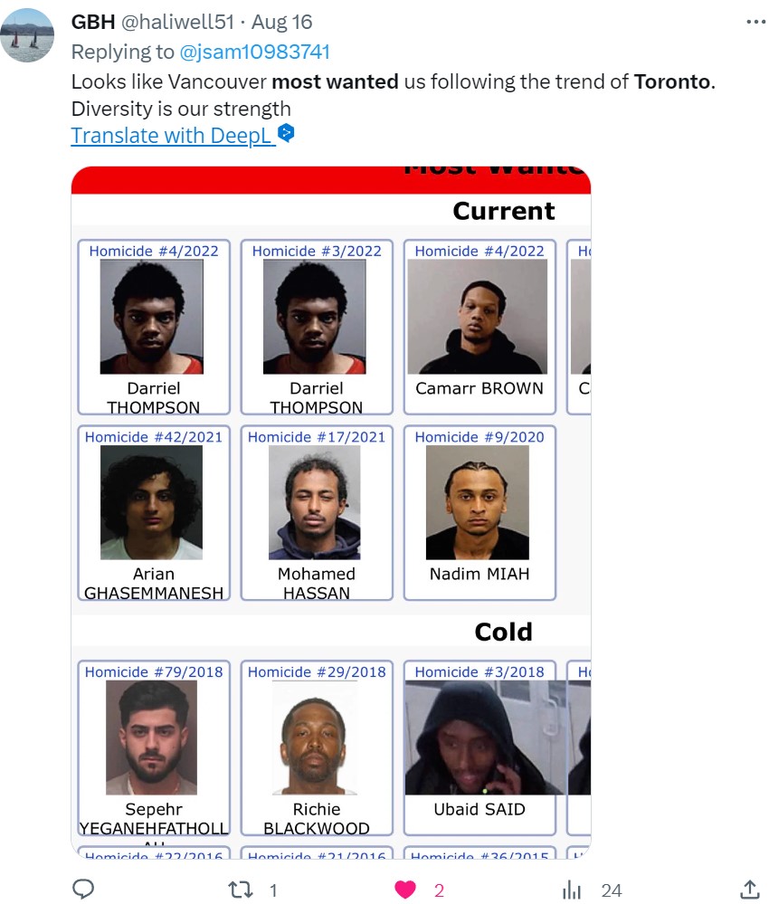 På den amerikanske sikkerhetstjenesten FBIs topp ti-liste over de mest eftersøkte kriminelle finner man folk av alle etnisiteter. Mangfold og inkludering preger også den kanadiske byen Toronto der nesten alle de 58 mest eftersøkte kriminelle har migrasjonsbakgrunn.