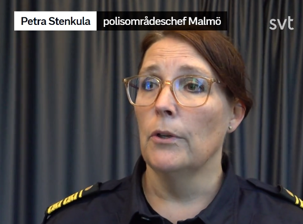 Petra Stenkula, politiområdesjef i Malmö, «blir trist» over steinkasting mot politiet og påtenning av biler. Ingen er pågrepet etter opptøyene i byen, men politiet har sendt en e-post til skolene.