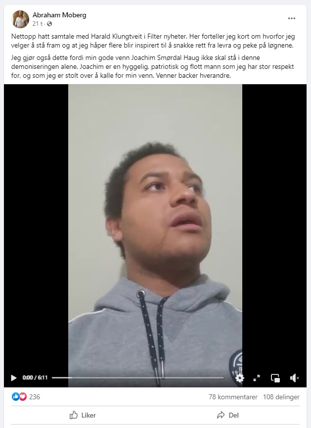 Onsdag la han ut en 06.10 minutters rant om folks raseri over alle problemene vi påføres. Av hvem? Det er det ikke lov å si. Men Moberg tør: Det er jødene.