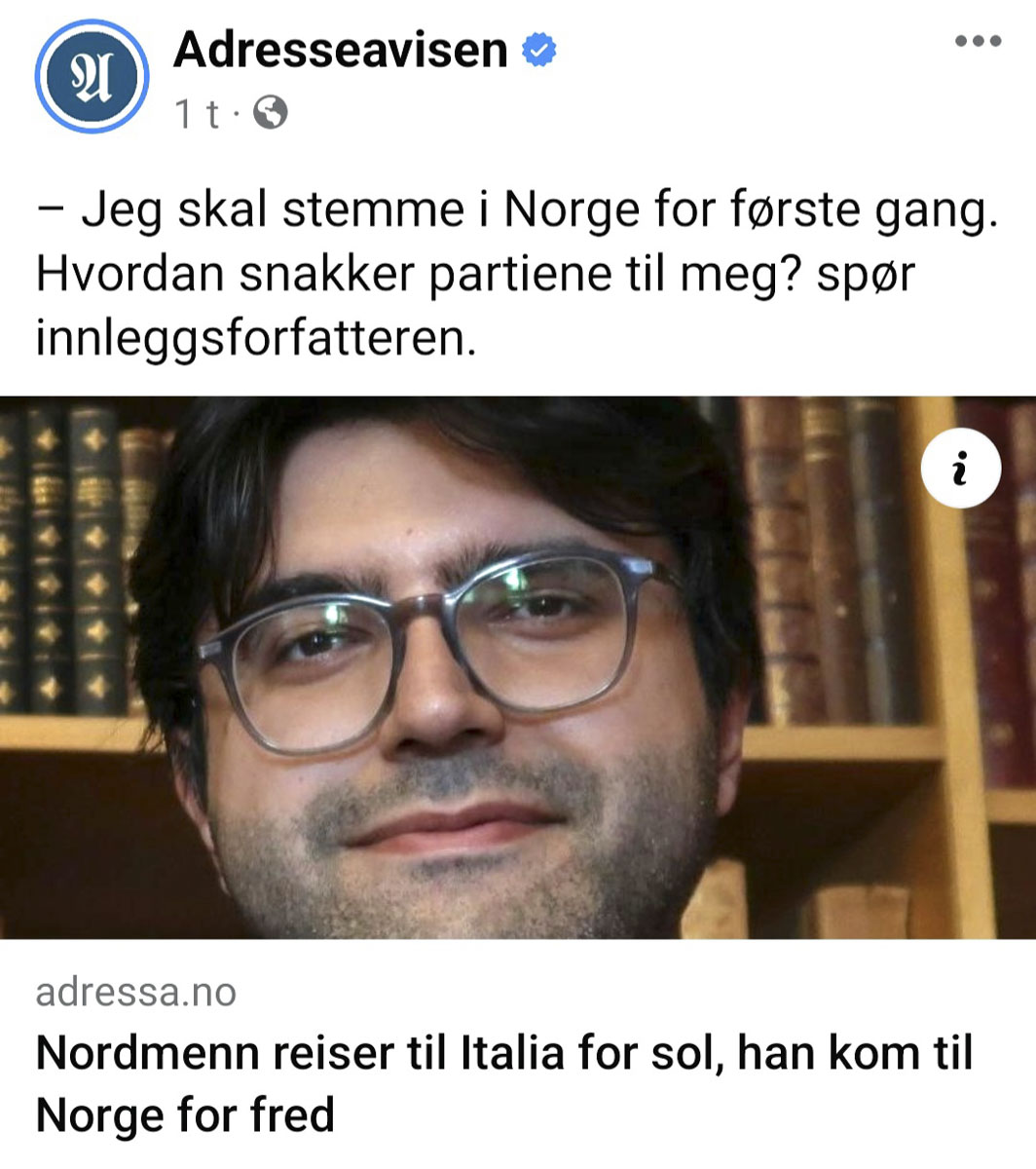 Flere av partiene som ennå ikke er representert på Stortinget, men som stiller lister landet rundt, har klaget på både muligheten til å få delta i valgdiskusjoner og til å få innlegg på trykk i den tradisjonelle pressen. Adresseavisen er et av de mediene som blant annet Norgesdemokratene beklager seg over, men selvsamme avis lar gjerne en tyrker som kun har befunnet seg fem år i Norge få ordet. Muhammed Hasan Sen bruker begrepet mangfold hele ti ganger i innlegget, og mener det er fremtiden for Norge: