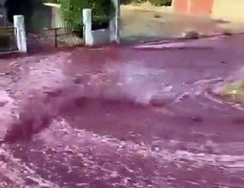 Ingen kom til skade da 2,2 millioner liter konsumklar DOC-rødvin oversvømmet gatene i landsbyen São Lourenço do Bairro i Nord-Portugal, men minst én huseier fikk kjelleren oversvømmet.