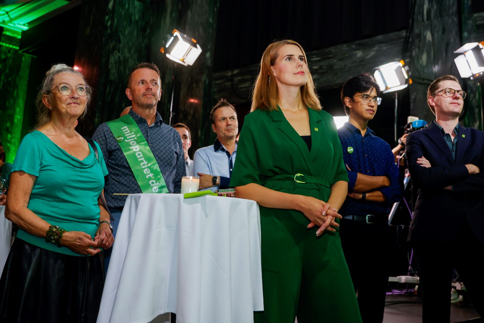 Sirin Stav (midten) på MDGs valgvake i Oslo under kommunevalget mandag. Foto: Frederik Ringnes / NTB