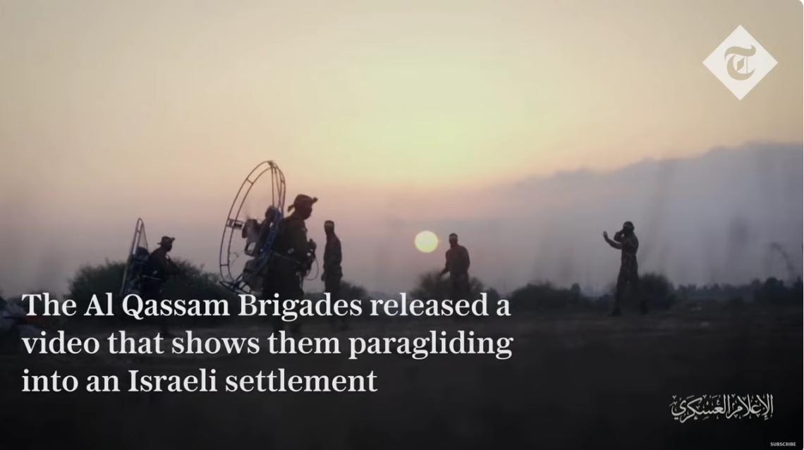 Opptak utgitt av al-Qassam brigade – den militære fløyen til Hamas – viser militante som krysser grensen til Israel ved å bruke motordrevne hangglidere.