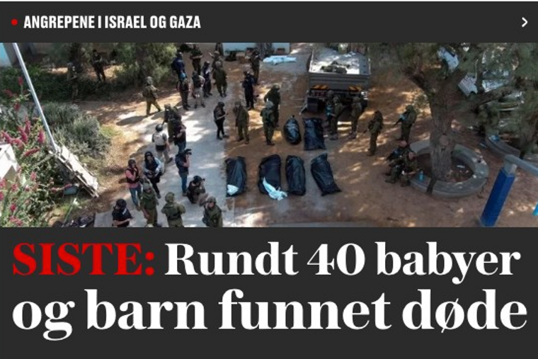 Flere medier, blant andre VG og Dagbladet, formidlet tirsdag at rundt 40 babyer og barn var blitt funnet døde i kibbutzen Kfar Aza i Israel. Opplysningene kan ikke bekreftes, og både VG og Dagbladet har endret sine artikler.