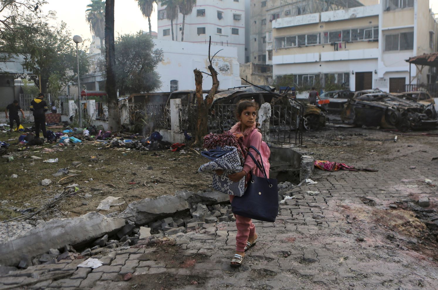 Området utenfor al-Ahli sykehuset på Gazastripen etter eksplosjonen. Foto: AP Photo/Abed Khaled