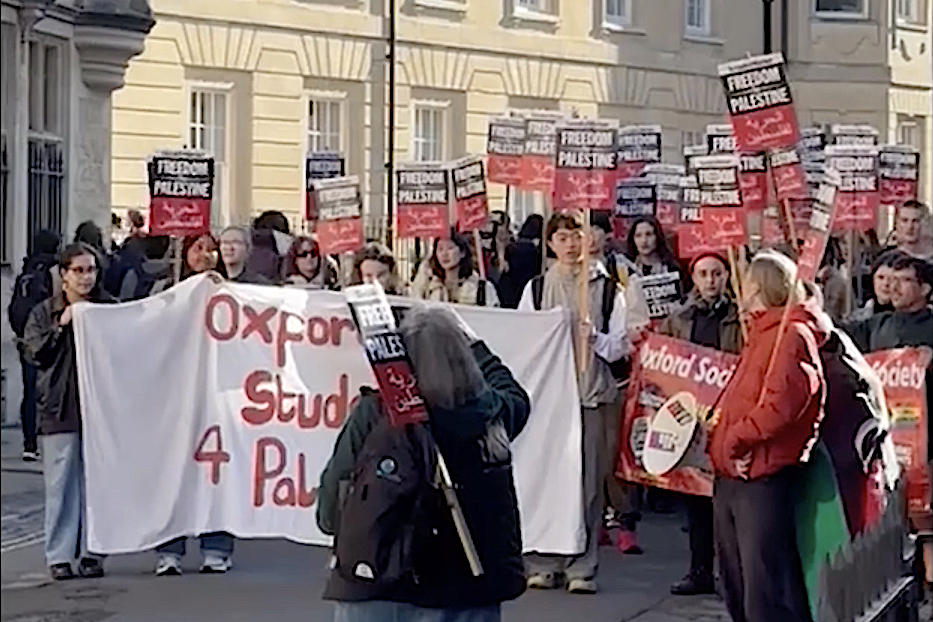 En gruppe studenter ved Oxford-universitetet demonstrerte tirsdag med taktfaste rop blant annet om palestinsk frigjøring «fra elven til havet». «Fra Oxford til Gaza, lenge leve intifadaen», lød et annet rop. Dette er oppfordring til vold i Storbritannia, uttaler en doktorand ved Oxford.