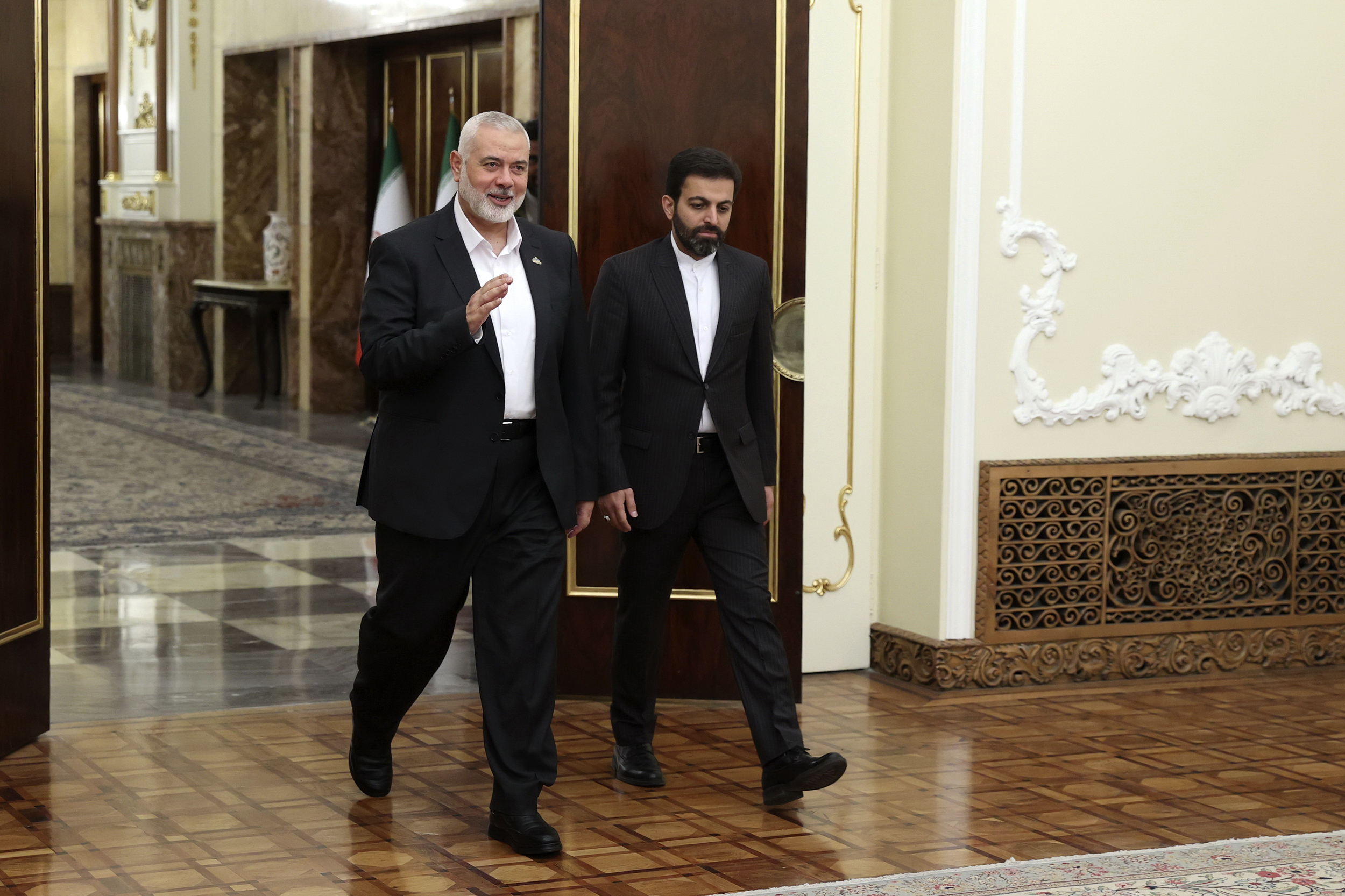Haas-leder Ismail Haniyeh på vei til et møte med Irans president Ebrahim Raisi i Teheran den 20. juni 2023. Foto: Iranian Presidency Office via AP / NTB.