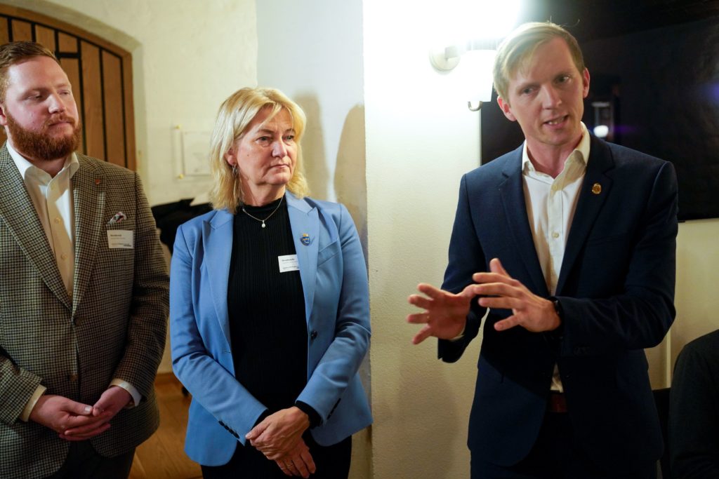 F.v. Marius Rovheim Aarvold, Sissel Knutsen Hegdal og Mathias Bernander var til stede da ordførere og næringslivsrepresentanter fra Grenland og Stavanger- og Kristiansands-regionen møtes i Stortinget for å diskuterer strømpriser. Foto: Terje Bendiksby / NTB